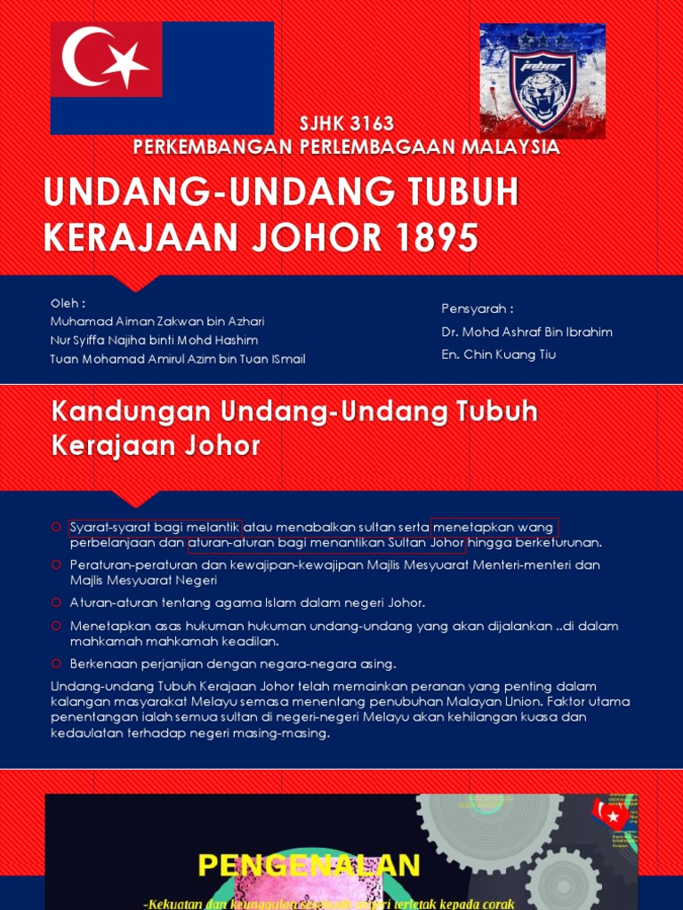 Undang Undang Tubuh Kerajaan Johor 1312h 1895 Kawah Buku